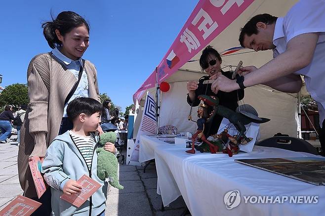 (서울=연합뉴스) 서대연 기자 = 어린이날을 하루 앞둔 4일 서울 종로구 국립민속박물관에서 열린 '세계로 가는 놀이기차' 행사에서 한 어린이가 체코 마리오네트 인형놀이를 관람하고 있다. 2025.5.4