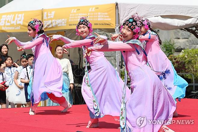 (서울=연합뉴스) 서대연 기자 = 어린이날을 하루 앞둔 4일 서울 종로구 국립민속박물관에서 열린 '세계로 가는 놀이기차' 행사에서 중국 전통문화 공연이 펼쳐지고 있다. 2025.5.4