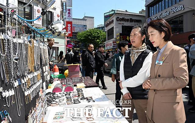 김 후보는 "대통령 후보들이 주로 시장을 돌지만 노점과 상인분들의 마음은 헛헛하다고 한다"며 "상인들이 느끼는 경기 침체나 어려움 전달이 잘 안된다"고 말했다.
