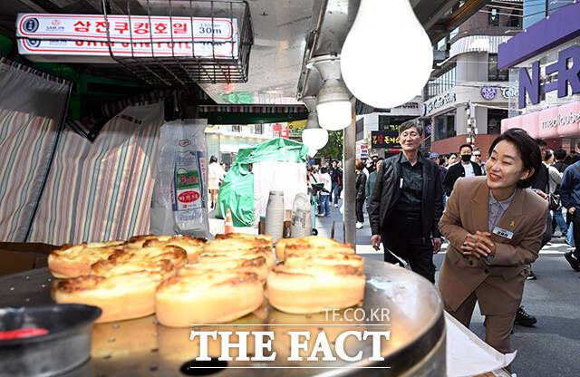'호떡 장사' 김재연 "웃음 드리는 정치하겠다" [TF사진관]