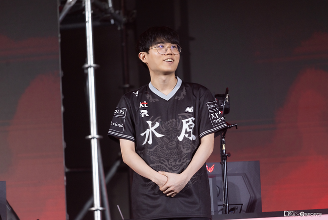 4일 오후 경기도 수원특례시 수원컨벤션센터에서 열린 LCK 5주 차 홈스탠드 kt 롤스터와 T1의 경기가 진행 중이다. '커즈' 문우찬이 정조대왕 유니폼을 착용했다.