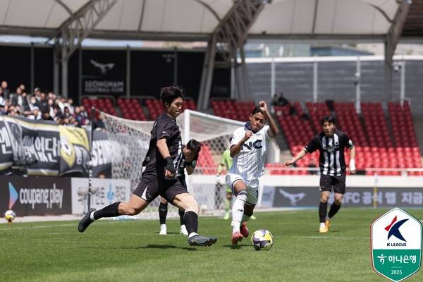 서울 이랜드가 공격에 고삐를 당겼다. 전반 32분 성남의 볼을 뺏어내면서 허용준이 내준 것을 페드링요가 왼쪽에서 슈팅했지만 유상훈 골키퍼 선방에 막혔다. 흔들리던 성남은 라인을 재정비하며 기회를 마련했다. 전반 39분 페널티 아크 부근에서 공을 잡은 박수빈이 회심의 슈팅을 시도했지만 골문 위로 넘어갔다. 이랜드는 전반 추가시간 아이데일이 골문을 노렸고 코너킥 기회도 만들었지만 성남이 탄탄한 수비로 막아세웠다.