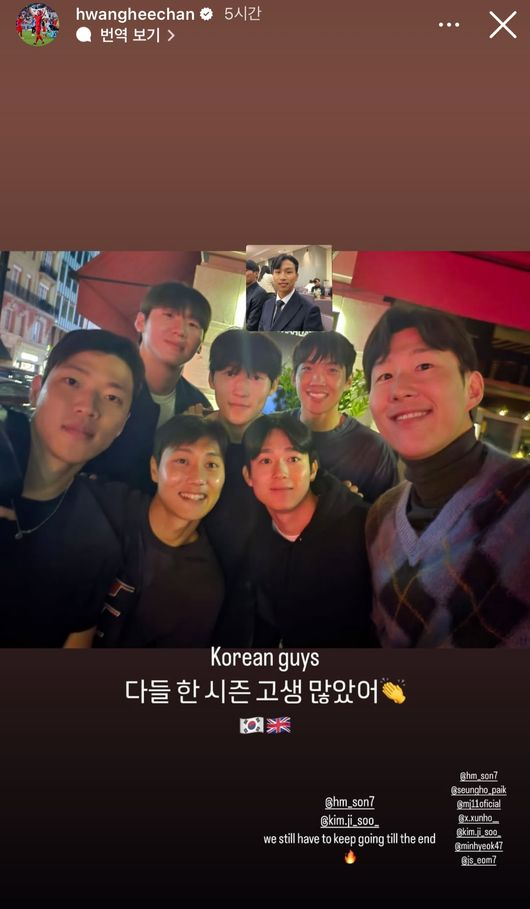 한편 손흥민을 포함해 잉글랜드 무대에서 활약 중인 한국 선수들이 시즌을 마무리하며 함께 모여 우정을 나눴다.