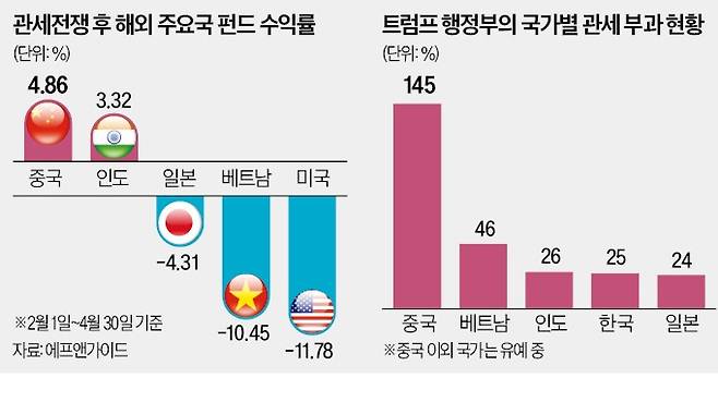 미국발(發) 관세전쟁이 본격화한 이후 중국과 인도 펀드가 비교적 높은 수익률을 나타내고 있다.