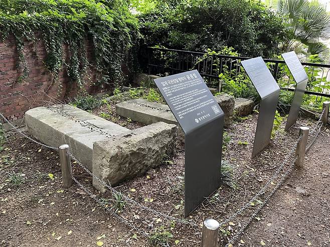 | ▲ 광주공원 내 친일파 단죄비. 구한말과 일제강점기 일제에 부역했던 친일파 윤웅렬, 이근호, 홍난유 등 세 명의 '송덕비'를 뽑아 눕혀 놓고 그들의 친일 행적을 상세히 적은 안내판을 세워두었다. 광주는 역사적 기억을 매우 중요시하는 도시다. |