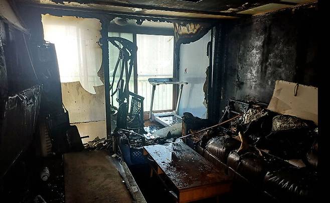 불은 아파트 내부 거실 등을 태우고 약 30분 만에 꺼졌습니다.