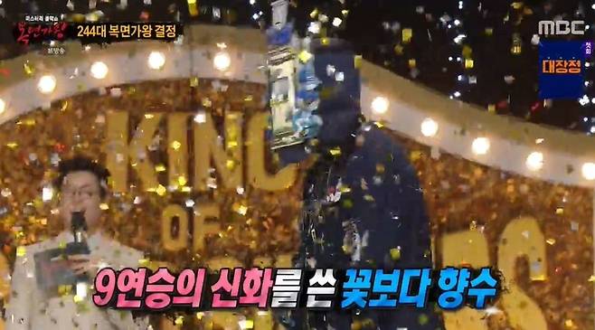 [TV리포트=남금주 기자] 꽃보다 향수가 9연승에 성공, 하현우, 윤민에 이어 역대 3번째 9연승 가왕에 등극했다.