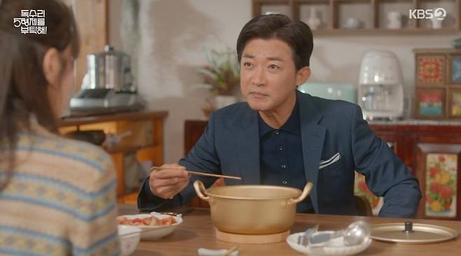 4일 KBS 2TV ‘독수리 5형제를 부탁해!’에선 광숙(엄지원 분)과 동석(안재욱 분)의 라면 데이트가 그려졌다.