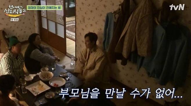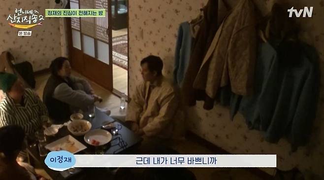 이날 푸짐한 저녁 식사 후 방에 모인 이정재와 사남매. 이정재는 염정아를 향해 "아버지끼리 친분이 있는 것 같다"고 밝혔다. 염정아는 46년생 동갑이라고 말하며 "그분들이 벌써 80이다"라고 한숨을 쉬었다. 그러자 이정재는 "요즘 되게 고민이 많다. 제가 아직 혼자니까 (부모님과) 맨날 통화도 하고 만나러 가려고 하는데, 내가 너무 바쁘니까 만날 수가 없다. 통화만 한다"고 토로했다.