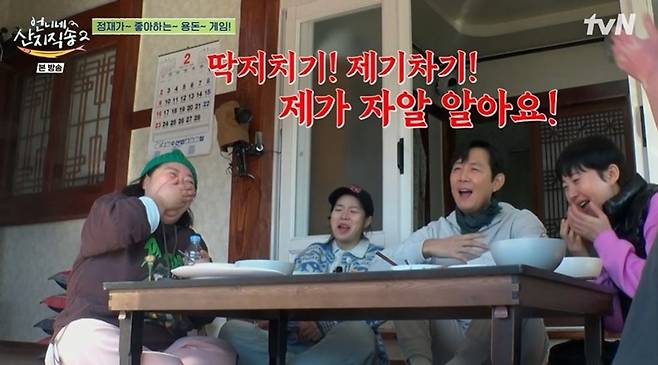 4일 방송된 tvN '언니네 산지직송2'에서는 염정아, 박준면, 임지연, 이재욱, 이정재가 '오징어게임'처럼 딱지치기를 했다.