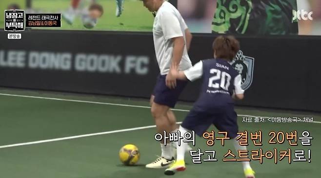 김남일은 "본인이 좋아한다면 할 생각이었는데, 초등학교 때 친구들과 축구하는 걸 지켜봤다. 30분 동안 공 한 번 못 차더라. 터치가 없었다"라며 "그래서 아들한테 물어봤다. 아들이 또래보다 덩치가 크다. 몸싸움도 할 수 있는데 왜 안 하냐니까 자기가 부딪치면 친구들이 다칠까봐 몸싸움을 못하겠다고 하더라"고 밝혔다. 이에 안정환은 "아버지하고는 정반대"라며 "쟤는 축구공 차는 것보다 사람 차는 게 더 많았다"고 폭로했다.