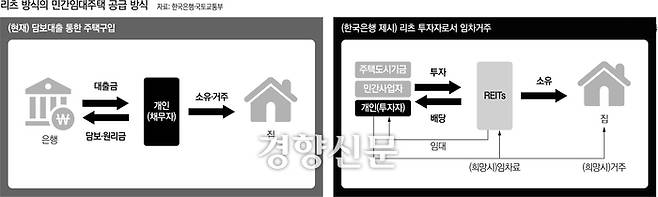 가계부채를 줄이고, 주거안정도 도모하기 위한 대안으로 개인과 리츠가 동시에 아파트에 투자하는 논의도 활발히 진행되고 있다. 지난해 11월 한국은행이 가계부채 문제를 해결할 대안으로 제안한 ‘한국형 뉴 리츠(부동산투자회사·REITs)’가 그 중 하나다.