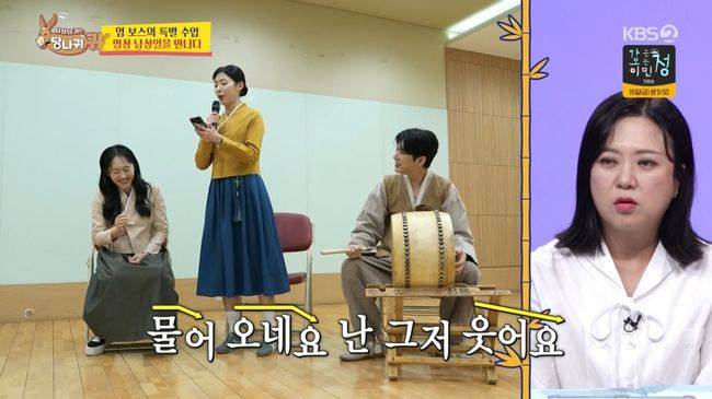 이날 엄지인은 '진품아씨'가 된 홍주연의 캐릭터를 만들어주겠다며 '명창' 남상일을 초대해 노래 수업을 시작했다.