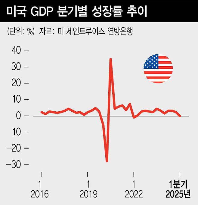 여기에 미국 경제 지표 역시 회복의 근거가 되지 못하고 있다. 미국의 2025년 1분기 실질 국내총생산(GDP)은 연율 기준 -0.3%로 마이너스 전환됐다. 기본적으로 트럼프 대통령의 관세 전쟁을 앞둔 ‘순수입’(수입에서 수출을 뺀 규모)의 증가가 영향을 미쳤지만, 미국 경제를 지탱하던 소비도 조금씩 약화하고 있다. 가계 저축률이 하락하고 신용 사용은 늘어나며 소비를 압박하고 있는 걸로 보인다. 50을 간신히 넘기는 제조업·서비스업 구매관리자지수(PMI)에서 확인되듯, 정책 불확실성이 기업 투자 심리를 위축시키면서 향후 성장 경로에 대한 신뢰가 떨어진다. 이렇게 보면 결국 실물 경제와 정책, 양대 축이 동시에 흔들리며 글로벌 금융시장의 구조적 복원력이 약화한 셈이다.