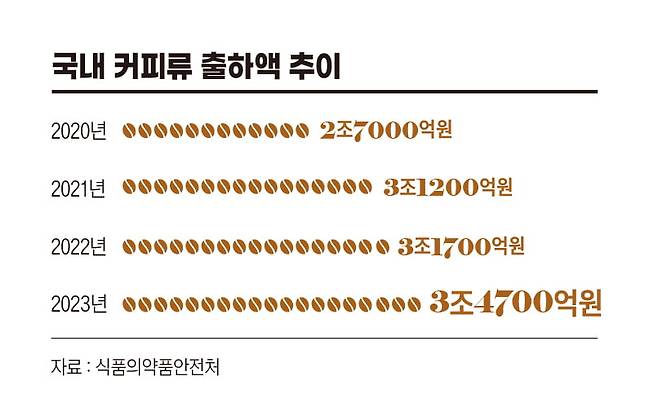 수치로도 확인된다. 식품의약품안전처에 따르면 2023년 국내 커피류 생산액은 전년 대비 5.1% 증가하며 2조7000억원을 돌파했다.