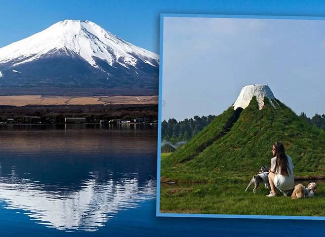 中관광지 '짝퉁 후지산' 제작 논란…언덕에 흰색 페인트칠