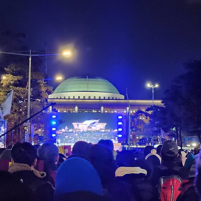 콘서트장에서 주로 나오던 "앵콜"과 "울지마"의 비트를 살짝 바꾼 그들의 함성이 국회 앞에서 파도처럼 흘러다녔다. 그때가 '이 광장은 내 또래가 대다수'라는 것을 직감하게 된 뭉클했던 순간이었다.