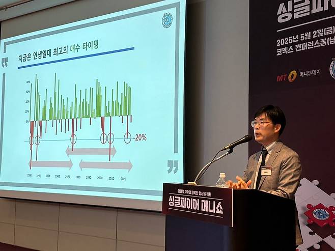 미국 지수투자로 34억원의 자산을 모은 경제 인플루언서 '포메뽀꼬'는 3일 서울 삼성동 코엑스에서 열린 '싱글파이어 머니쇼'에서 '여유로운 노후를 위한 4050 주식투자 포트폴리오 만들기' 강연에서 이같이 말했다.