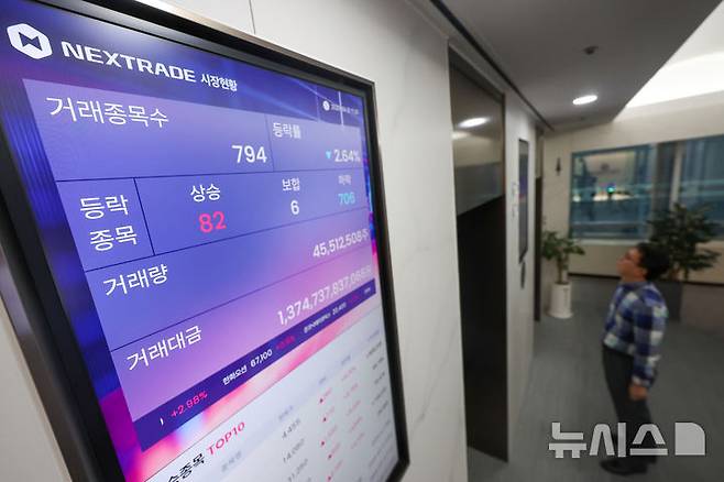 [서울=뉴시스]우연수 기자 = 대체거래소 '넥스트레이드'의 시장점유율이 출범 두달 만에 20%에 안착했다. 기존에 한국거래소엔 없던 프리·애프터마켓 거래가 빠르게 자리잡으면서 새로운 시장을 창출했다는 평가도 받는다.