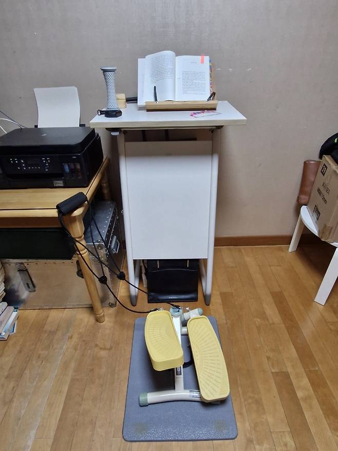 | ▲ 스텝퍼를 하며 책을 읽거나 영화를 보면 운동효과가 훨씬 커진다. |