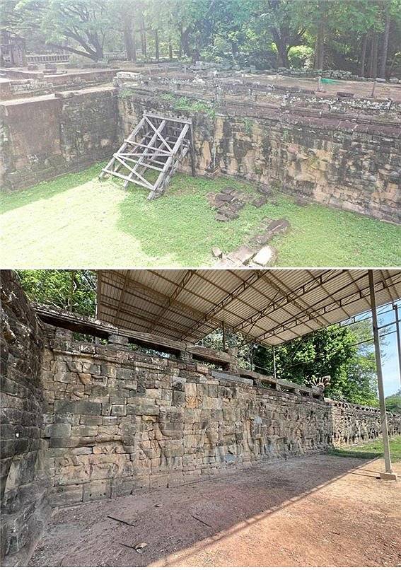 코끼리 테라스는 크메르 제국 유적 중 하나다. 위는 복원 전, 아래는 복원 후 모습. 2025.5.5 [국가유산진흥원 제공. 재판매 및 DB 금지]