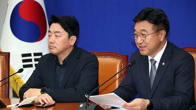 ▲ 5일 서울 여의도 국회에서 더불어민주당 윤호중 총괄선대본부장이 기자간담회를 하고 있다.