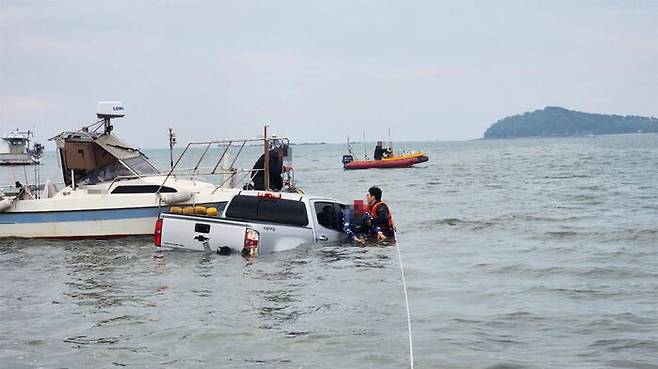 해경은 A 씨가 바다를 향해 비스듬히 기울어진 곳에서 레저용 보트를 내리다가 차량이 바다에 빠진 것으로 보고 구체적인 사고 경위를 조사하고 있습니다.