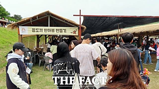 이날 돌창 만들기와 뗀석기 만들기 등 각종 체험이 가능한 '석장리 구석기 체험존'이 인기를 끌었다.