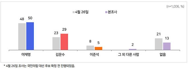 - [여론조사②] 보수 단일화해도 이재명 50%‥김문수는 29%, 한덕수는 32%