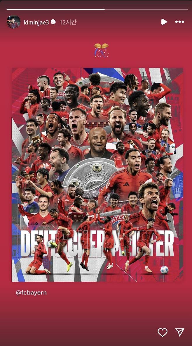 시즌 내내 후방을 든든히 지켜준 김민재도 우승의 순간을 담담히 즐겼다. 자신의 사회관계망서비스에 우승을 축하하는 포스터를 공유하며 함께 축하했다.