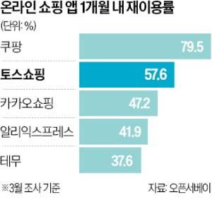 토스쇼핑은 4050세대 여성을 타깃으로 덩치를 키워가고 있다. 소비자 데이터 플랫폼 오픈서베이에 따르면 토스쇼핑의 ‘최근 1개월 이용 전환율’은 57.6%로 나타났다. 토스쇼핑 유경험자 가운데 최근 한 달 새 이곳에서 상품을 재구매한 사람이 10명 중 6명에 달한다는 뜻이다. 최근 1개월 이용 전환율은 알리익스프레, 테무 등 중국 업체는 물론 G마켓, 카카오쇼핑 같은 한국 업체도 30~40%대에 머무는 상황이다. 토스 관계자는 “4050세대는 새로운 쇼핑 채널을 적극적으로 발굴하지 않지만 재테크에는 관심이 많다”며 “토스 앱에는 만보기로 포인트를 적립하는 기능과 쿠폰을 저장할 수 있는 등의 기능이 있는데 이런 서비스가 4050세대에 인기를 끌고 있다”고 말했다.