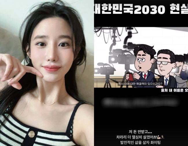 이어 ‘대한민국 2030 현실’이라는 제목의 한 영상을 공유한 뒤 “저 돈 안받고… 차라리 더 열심히 살겠어!!”라며 “발전적인 삶을 살자 화이팅”이라고 말했다.