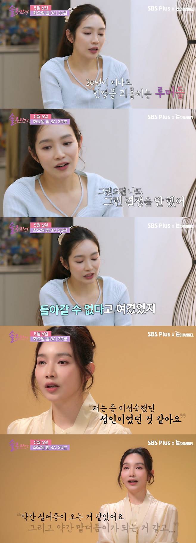 5일 SBS Plus·E채널 공동 제작 예능 '솔로라서'는 '과거와 달라진 이민영!'이라는 제목으로 영상을 게재했다.