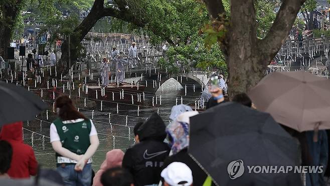 (함안=연합뉴스) 김동민 기자 = 부처님오신날이자 어린이날인 5일 오후 경남 함안군 함안면 무진정에서 '제32회 함안낙화놀이 공개행사'가 시작을 앞두고 있다.