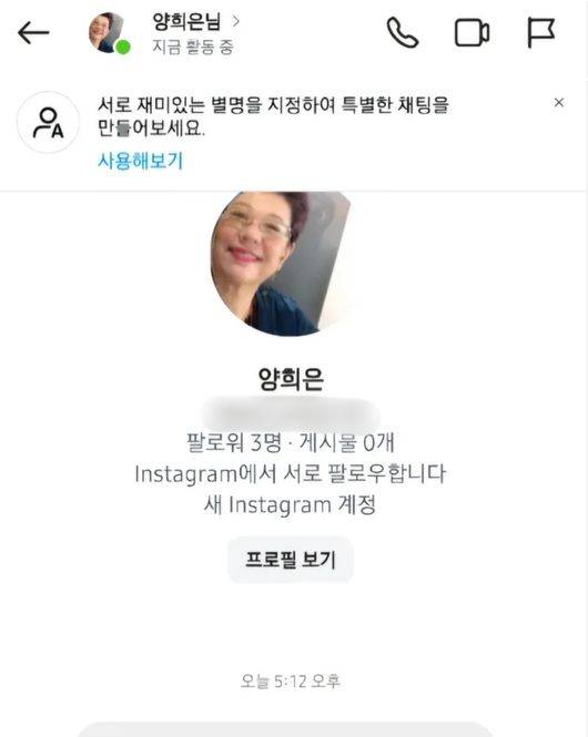 이에 양희은은 “야!야!야! 너 이름이 뭐야???”라며 “제 계정보다 숫자 하나가 더 보이네요. 조심하셔요. 지인들이 신고해 주셨네요”라고 팬들에게도 피해를 당부했다.
