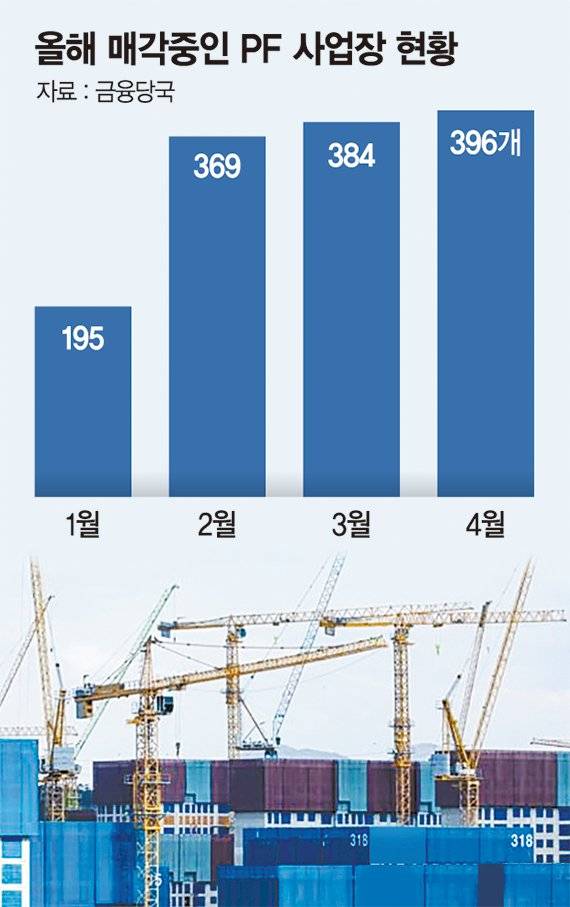 4월 기준 396개 현장을 보면 서울 등 수도권이 157개로 40% 가량을 차지하고 있다. 경·공매로 나온 PF 현장 10곳 중 6곳이 지방에 위치한 셈이다.