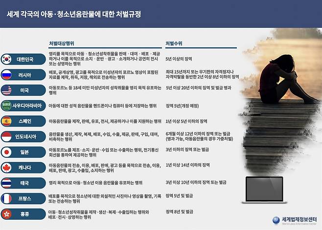 | ▲ 세계 각국 아동 음란물에 관한 처벌 규정 |