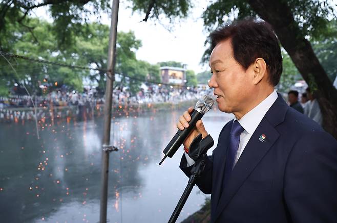 행사에 참석한 박완수 경남지사는 축사를 통해 "오늘 부처님 오신 날과 함께 열리는 함안낙화놀이를 진심으로 축하드린다"며 "선조들의 지혜와 정신이 담긴 낙화놀이가 무진정의 자연경관과 어우러져 아름다운 장관을 만들어내고 있다"고 말했다.