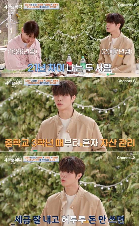5일 방송된 채널A '절친 토큐멘터리 - 4인용식탁'에는 김준수 편으로 꾸며진 가운데, 뮤지컬 배우 손준호, SS501 김형준, 가수 정동원을 초대해 4인용 식탁을 꾸몄다.