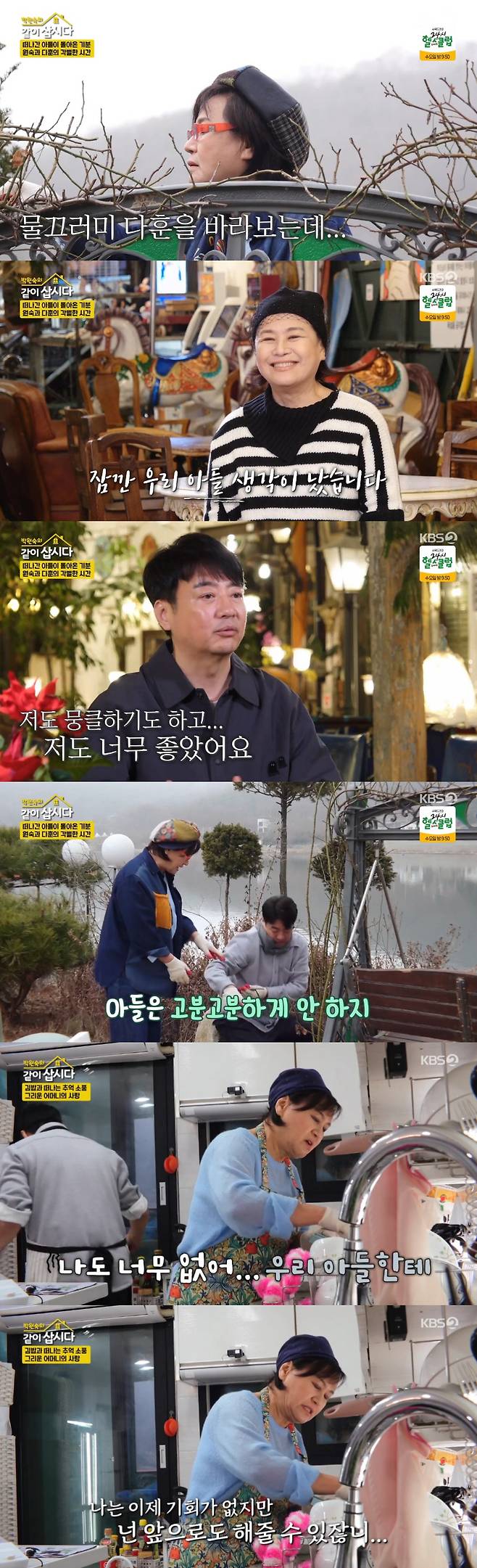 박원숙은 제작진과의 인터뷰에서 "장미 넝쿨 손질하는데 말없이 옆에서 도와주는 것도 너무 고마웠는데 하다가 아들 같다는 생각이 문득 들었다. 곰살맞게 '여기 잘라요?', '이거 해요?'하는데 너무나 아들같이 따뜻하게 해주는 게 고마웠다"며 "우리 아들 생각이 잠깐 났다"며 먼저 세상을 떠난 아들을 향한 그리움을 드러냈다.
