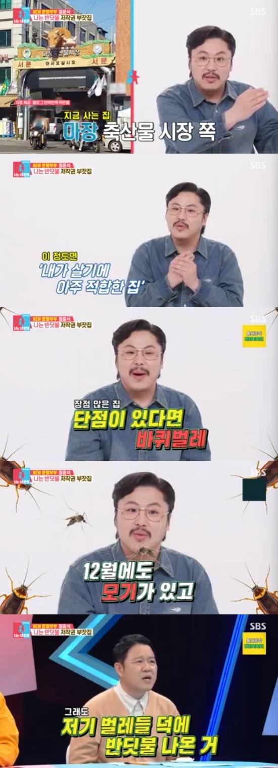 정중식은 "이 집의 단점이라면 바퀴벌레랑 12월까지 모기가 있다. 하수구에 기름이 많으니까 모기들이 너무 좋아한다. 그리고 하수구에서 고기 냄새가 엄청 올라온다"고 말했다.