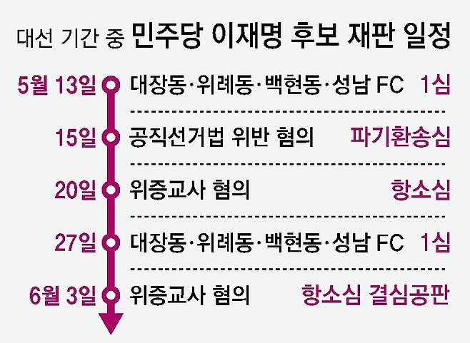 李 선거운동기간-대선일 재판 5건