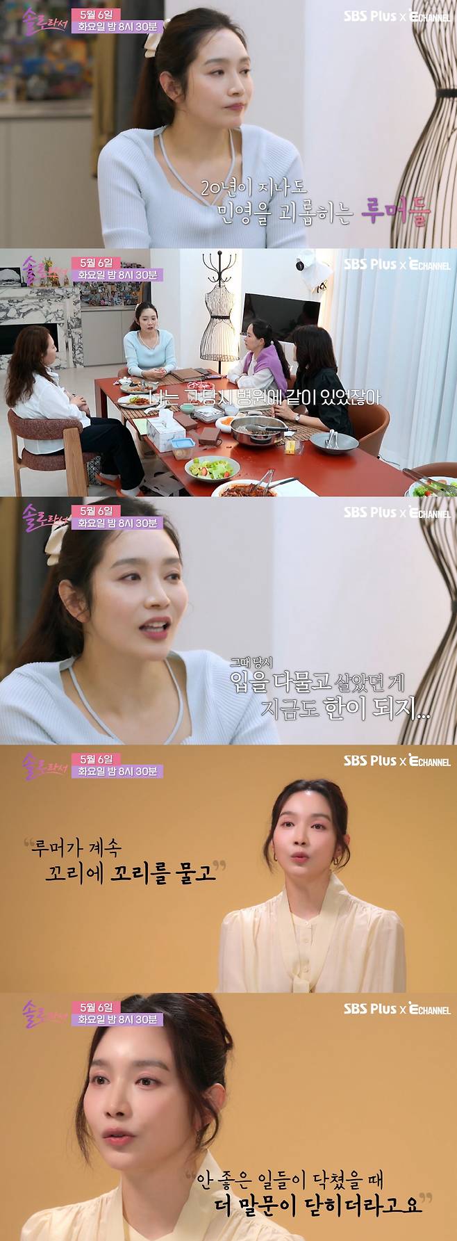 선공개 영상에서 이민영은 초중고 동창인 절친들을 초대해 집들이를 하던 도중 허심탄회한 이야기를 나눴다. 친구들은 "아직도 너무 억울하게 말도 안 되는 이야기들을 많이 한다", "20년 가까이 됐는데 어디서 그런 이야기가 나오는 거냐"며 20년 넘게 루머에 시달리는 이민영을 안쓰러워했다.
