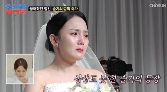 (엑스포츠뉴스 김예나 기자) '조선의 사랑꾼' 강은비가 박슬기의 깜짝 축가 이벤트에 눈물을 쏟았다.