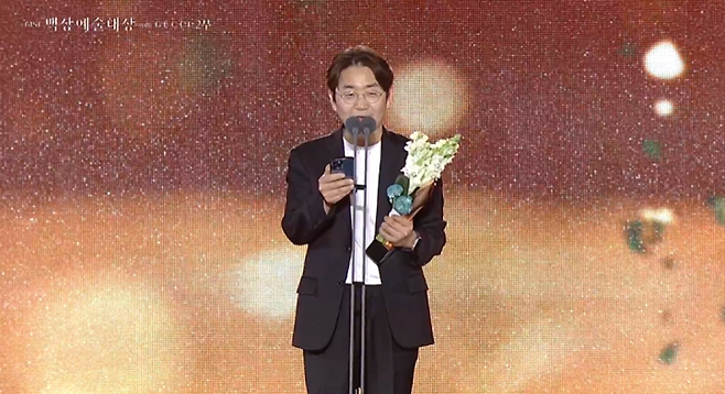 이에 김 PD는 "10년 전 백상에 처음 왔다. 상 받으러 온 건 아니고 백스테이지에 있었다. 그때 대상을 나영석 선배님이 받으셨다. PD로서 대상을 받는 기분은 어떨까, 평생 못 느껴볼 거라 생각했는데 백상 미쳤다. 이런 말도 안 되는 일이 일어났다"고 감격했다.