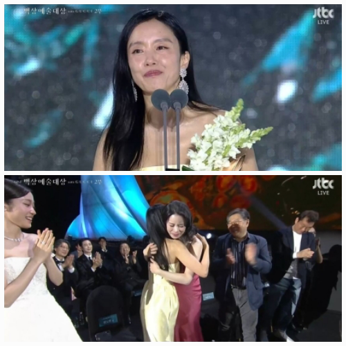 전도연이 수상자로 호명되자, 객석에 있던 임지연은 뜨겁게 박수를 보내며 눈시울을 붉혔다. 두 사람은 무대 아래에서 포옹을 나누며 작품 속 인연을 현실의 감동으로 이어갔다. 그 짧은 포옹은, 배우로서 또 사람으로서 함께 걸어온 시간을 상징하듯 먹먹한 여운을 남겼다.