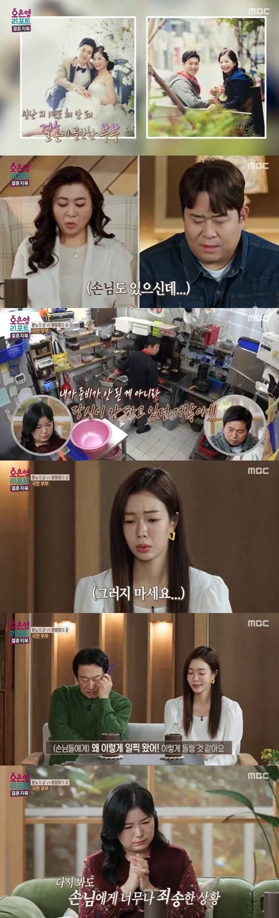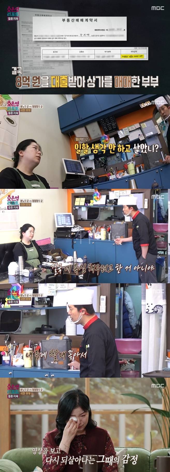 식당 자리를 알아보려다가 8억 원의 대출을 받아 상가를 매매한 부부는 이로 인해 빚을 갚고 있었다. 남편은 매매를 제안했던 아내에게 "책임감 있어? 어떤 책임감"이라며 쏘아붙였고, 아내는 "집 팔고 차 팔고 하고 있잖아"라고 말했다.