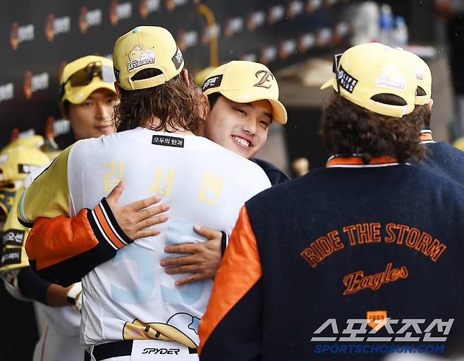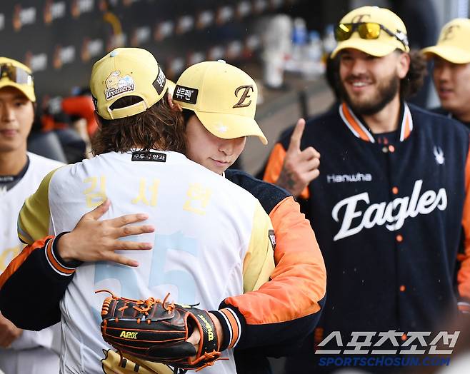 김태연 등 동료 선수와 코치들도 와이스를 뜨겁게 안으며 역투를 축하했다. 그런데, 끈끈한 이글스의 상징이 된 동료 선발투수들의 포옹이 이어지지 않았다. 폰류엄문은 어디에 있는 것일까?