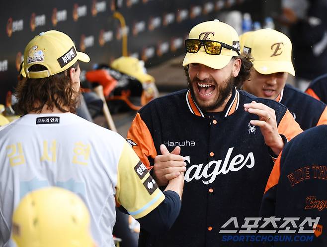 와이스는 웃음 세포가 없는 사람인 줄 알았다. 동료 외국인 투수 폰세와는 정반대의 성격이다. 하지만 이날 와이스의 장난과 웃음 덕분에 선입견이 보기 좋게 깨졌다. 독수리 5형제가 또 그림을 만들었다.