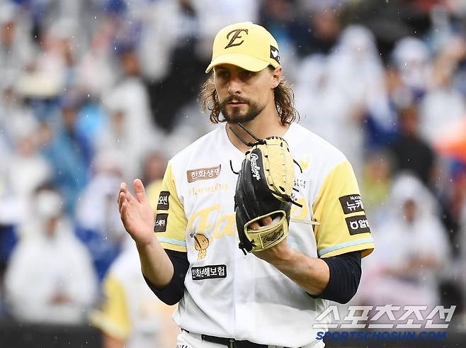 [대전=스포츠조선 정재근 기자] 뭔가 이상했다. 혼신의 107구 역투로 7이닝을 책임졌는데, 독수리 5선발 동료들의 축하 포옹이 없었다. '두 얼굴의 사나이' 와이스의 '뻥카'를 폰류엄문이 정말 믿었기 때문이다.